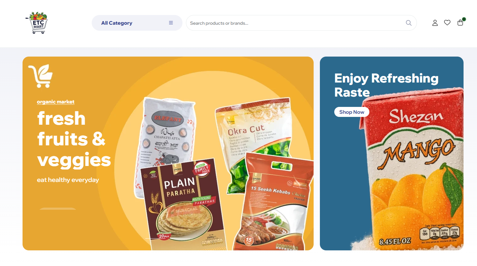 German grocery e-commerce platform using Shopify theme with updated design, complete inventory management, payment gateway integration, and POS system. Multi-language support for German and English markets.